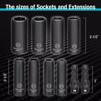10-Piece 3/8" Drive 6 Point Deep Impact Socket Set SAE Sizes