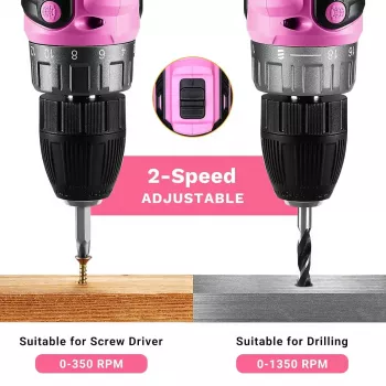 Pink Cordless Power Drill Set 20V Lightweight Electric Tool for Women